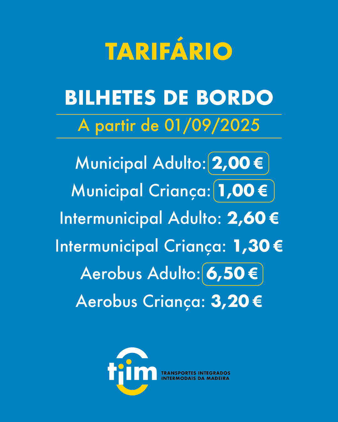 Consulte aqui a alteração dos preços dos bilhetes adquiridos a bordo, que estarão em vigor a partir de 01 de setembro de 2025: