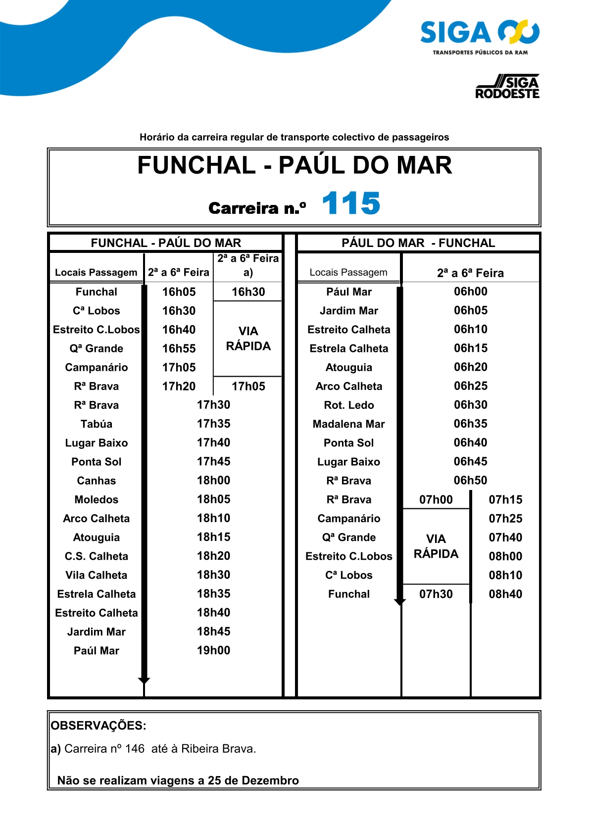 115 370 Funchal - Paul do Mar via Estrada Regional e Canhas