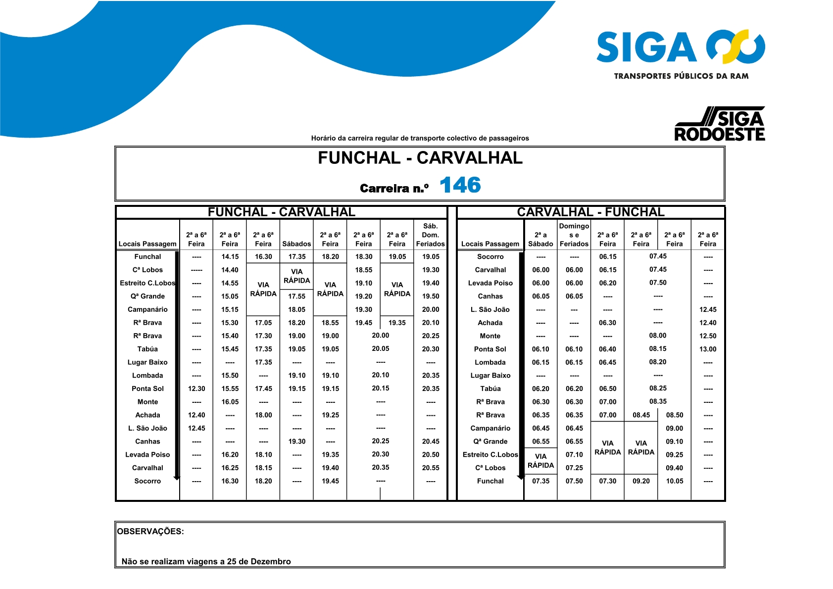 326 Funchal - Carvalhal VIA RÁPIDA