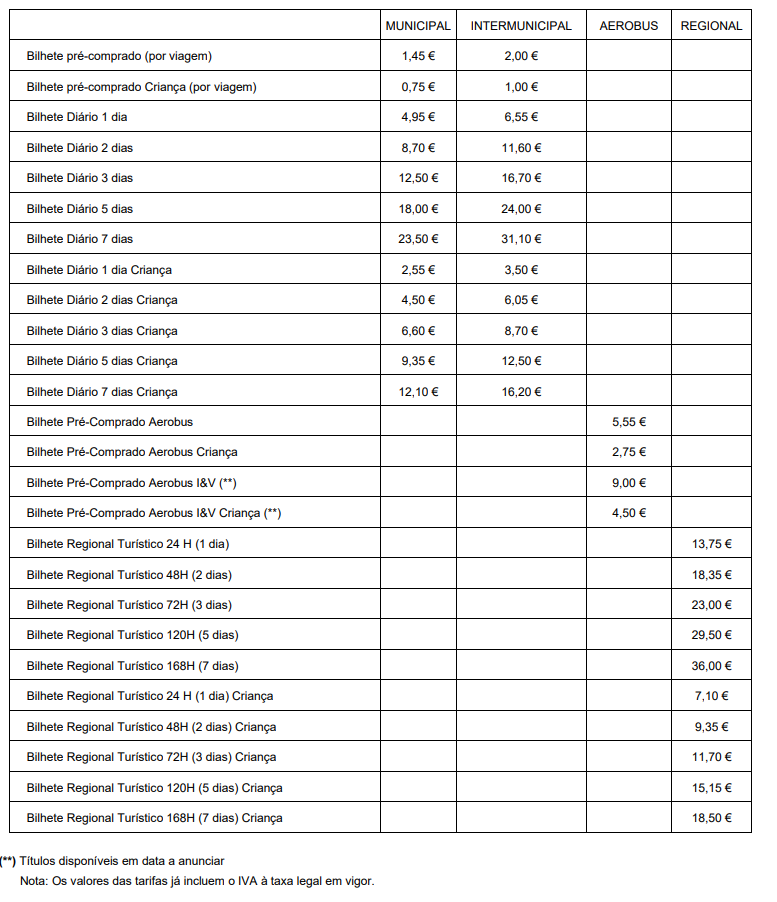 Alteração do sistema tarifário aplicáveis aos transportes públicos
